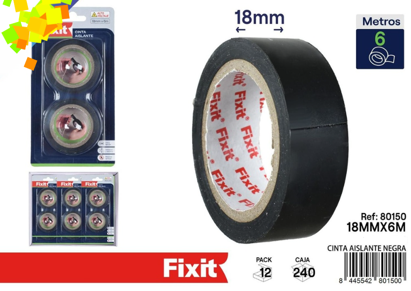 Su ancho de 18 mm permite una aplicación precisa sobre cables y conexiones, mientras que sus 6 metros de longitud la hacen práctica y eficiente para múltiples usos. Ofrece una excelente adherencia, se adapta fácilmente a superficies irregulares y ayuda a proteger contra la humedad, el polvo y el desgaste.