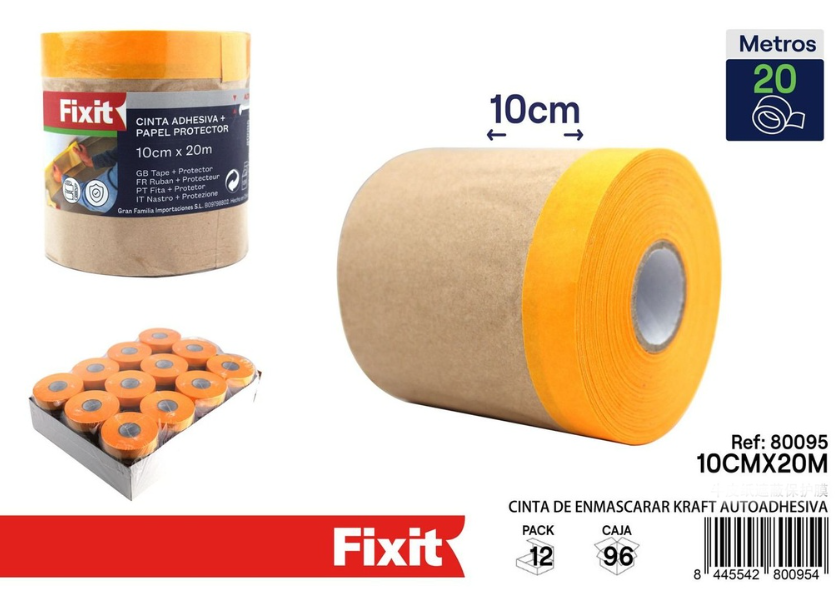 La cinta de enmascarar kraft autoadhesiva 10 cm x 20 m es la solución perfecta para cubrir y proteger grandes superficies durante trabajos de pintura, barnizado, reformas o bricolaje profesional. Fabricada en papel kraft de alta resistencia, garantiza una sujeción segura y una retirada limpia sin dañar las superficies.