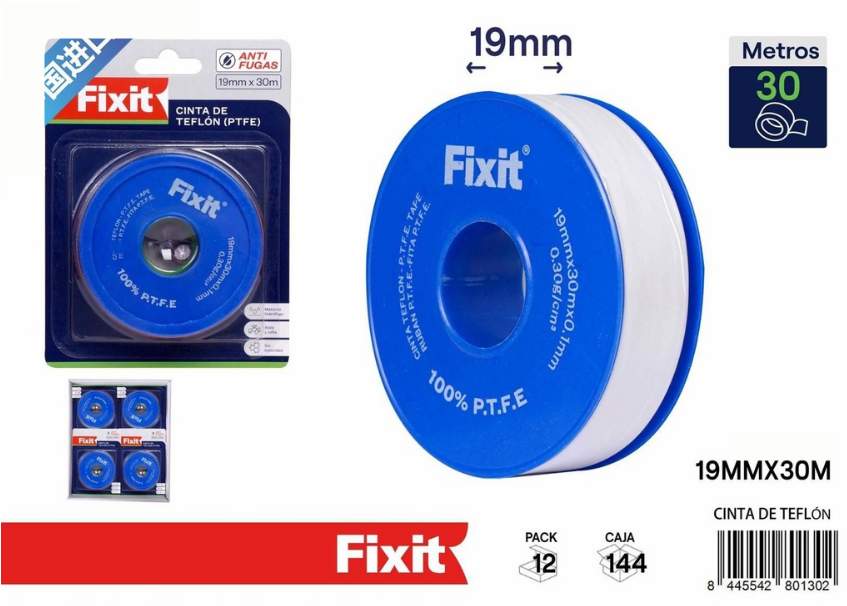 Ya sea para aplicaciones nuevas o reparaciones rápidas, la Cinta de teflón 19×30 metros 0.1×0.3 mm es el accesorio imprescindible para garantizar conexiones seguras y duraderas. Compra ahora y experimenta la tranquilidad de un sellado perfecto cada vez.