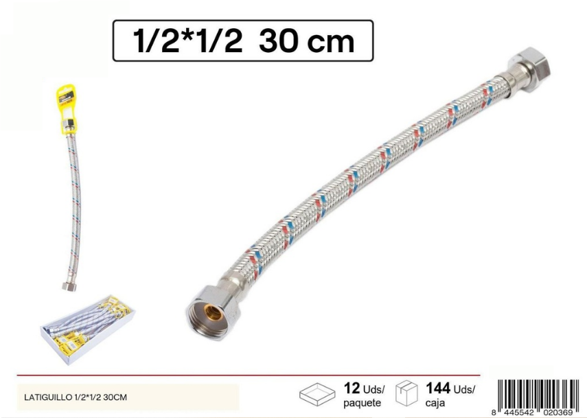 Con una longitud de 30 cm, esta manguera es perfecta para aplicaciones en espacios reducidos. Su diseño compacto permite una fácil instalación incluso en zonas de difícil acceso. Además, su doble conexión tipo 1/2-1/2 la hace ideal para una amplia variedad de usos, tales como sistemas de agua, conexiones entre electrodomésticos o equipos industriales.