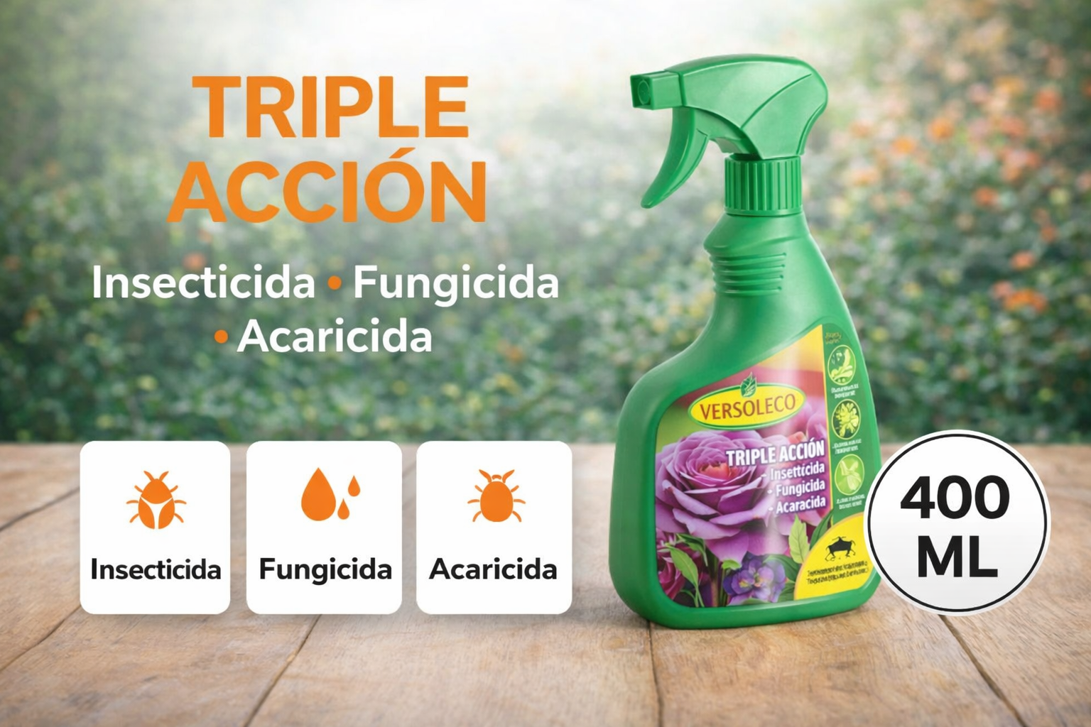 El fertilizante líquido efecto triple acción para plantas de 400 ml es una solución innovadora diseñada para promover el crecimiento saludable de tus plantas. Este producto se caracteriza por su formulación equilibrada, que proporciona nutrientes esenciales, estimula el desarrollo de raíces y mejora la resistencia a enfermedades.