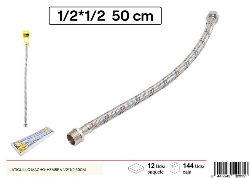 Si buscas un accesorio que combine funcionalidad, durabilidad, y facilidad de instalación, el latiguillo macho-hembra 1/2-1/2 de 50cm es la elección perfecta para tus sistemas hidráulicos. Mejora tus proyectos con un producto confiable y accesible, diseñado para ofrecer resultados excepcionales.