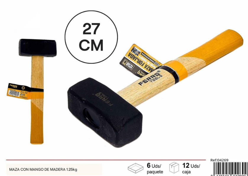 La maza de construcción con mango de madera 1,25 kg es una herramienta imprescindible para trabajos de albañilería, obra y construcción que requieren golpes firmes y controlados. Su cabeza de acero macizo proporciona la potencia necesaria para tareas exigentes, mientras que el mango de madera ofrece un agarre cómodo y seguro.